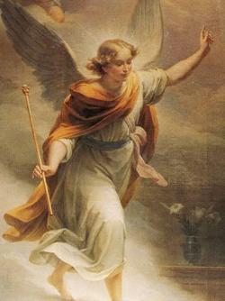 キリスト教では、聖母マリアにイエスの誕生を告げ、イスラム教では預言者マホメットにコーランを口述し、一字一句書き写すのを手伝いました。