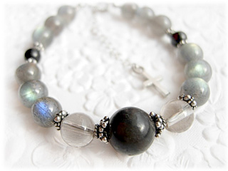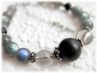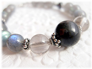 シャーマナイト、ラブラドライト、スモーキーシルバールチル、ハイパーシーンのブレスレットです。
