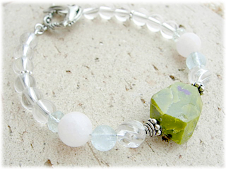 サイズ 内径15.5cm (サイズを変更できます。ご注文時にお知らせください) 計り方はこちら アトランティサイト タンブルカット モルガナイト 8mm アクアマリン 6mm,ボタンカット クリスタル 6mm パーツ(バリシルバー) アジャスター(ピューター合金)