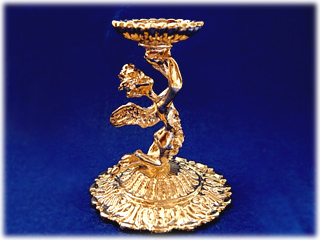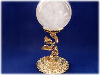 天使が丸玉を捧げ持つデザインの台座。