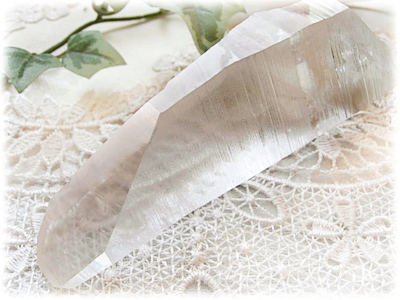 超古代文明レムリアの英知と情報が宿るといわれるクリスタル。 最初に発見されたレムリアンシードは、一本一本がまるで並べらべて置かれたような状態で発見されたといわれます。 それらのクリスタルは、古代レムリア人が情報を宿して埋めたものであるとして、著名なクリスタルヒーラーであるカトリーナ・ラファエル氏が「レムリアンシード」と命名しました。 柱面に、バーコードのような筋(レムリアンリッジ)が交互に3面あるのが特徴のひとつです。 この筋を指でなぞりながら瞑想すると、古代レムリアの情報を得ることができるといわれます。 古代英知が宿るレムリアンシードは、地球の波動が大きく変化する中、地球に無条件の愛を与える神の恵みが宿っています。 ライトワーカーが用いると優れた効果を発揮し、他者だけでなく自分自身も進化するように促します。 私達が多次元的な存在であることを教え、内なる次元、多次元にアクセスすることを教えます。 過去の知識に再接続させます。 チャクラのバランスを整え、ライトボディとチャクラを統合させます。 大きめのポイントです。 レムリアンリッジもハッキリとしており、透明度も高くきれいです。 先端は、マスタークリスタルの一つであるタビー状になっています。